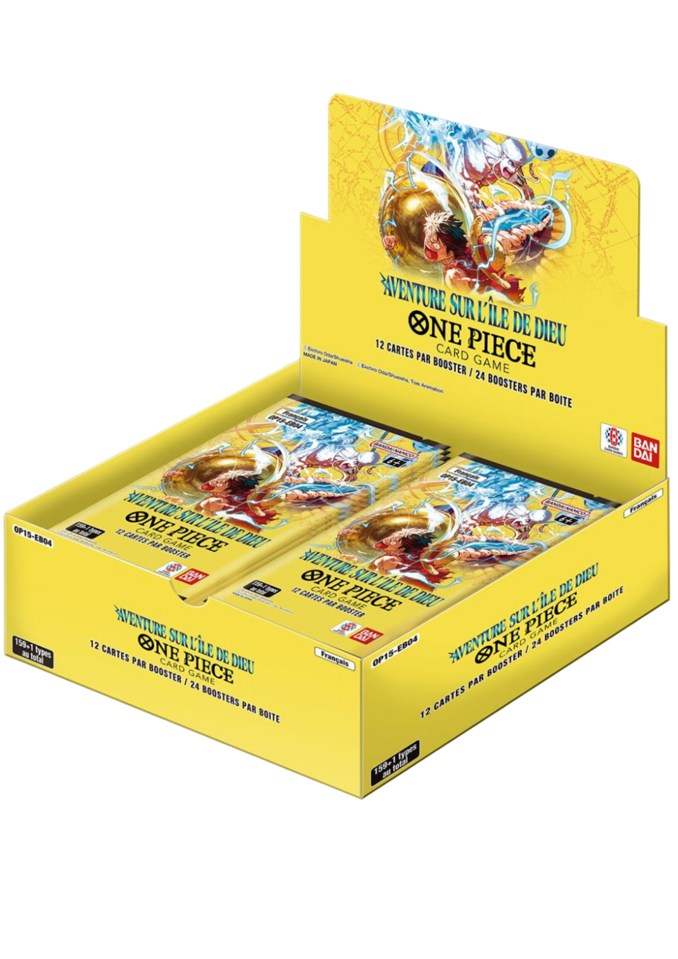 La Display One Piece OP-15 : Aventure sur l’Île de Dieu est le format idéal pour découvrir pleinement cette nouvelle extension inspirée de l’arc légendaire Skypiea. Prévue pour le 3 avril 2026, cette série plonge les joueurs dans l’univers de l’île céleste avec de nouvelles cartes, des leaders puissants et des mécaniques inédites.